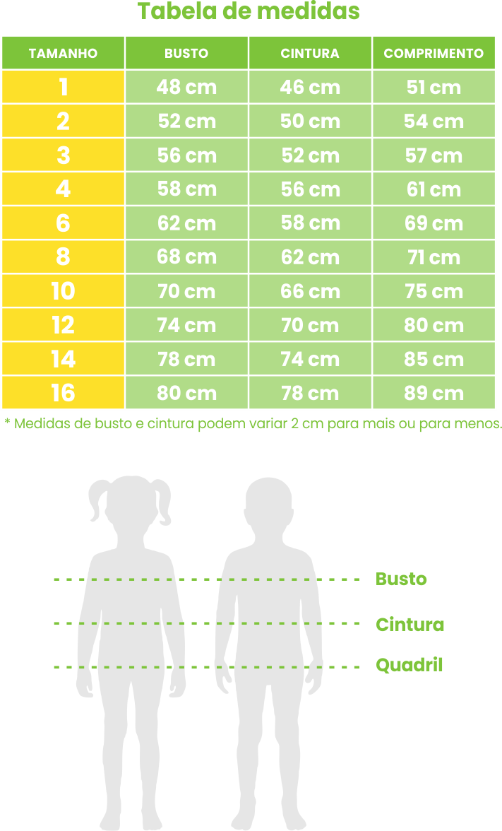 👉 E não para por aí: também criamos uma tabela de medidas de referência, que vai servir como guia na hora de decidir qual numeração levar. Assim, você compra com mais segurança e seu pequeno fica ainda mais confortável!